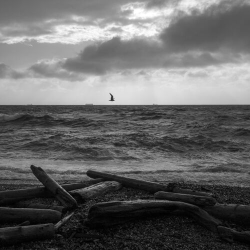 Sony RX100 相変わらずの荒れ模様の天気が続いているビクトリア。フェリーの欠航も頻繁に起きてる模様。少しの間、雨が止んで陽が刺してきたので海岸にカメラを持ち出してみました。海が大荒れで、昔の大映映画のオープニングのようでした。色味は僅かに空の…